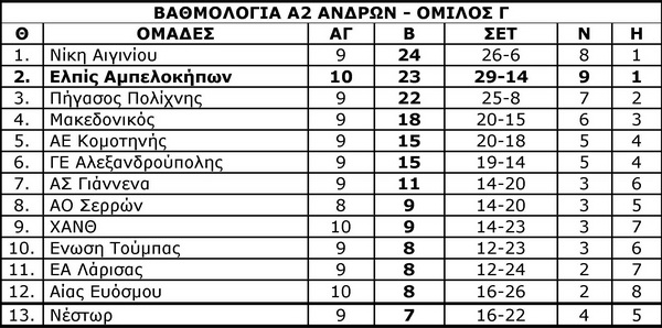 Άλλη μία σπουδαία εκτός έδρας νίκη σημείωσαν οι άνδρες της Ελπίδας στην Πολίχνη επί του Πήγασου με 3-2 και ανέβηκαν στην 2η θέση του Γ’ Ομίλου της Α2 Ανδρών. Η ομάδα του Γιώργου Καραβιδόπουλου θα μπορούσε να είχε νικήσει χωρίς απώλεια βαθμού, αφού είχε το μομέντουμ μετά την εύκολη επικράτηση στο τρίτο σετ. Εγιναν όμως αρκετά λάθη που οδήγησαν το ντέρμπι κορυφής στο τάι μπρέικ και εκεί η Ελπίδα έδειξε το καλό της πρόσωπο και δεν άφησε περιθώρια στους γηπεδούχους.Το επόμενο Σάββατο 12/12 η Ελπίδα ακολουθεί το ρεπό και η τόσο αναγκαία ξεκούραση.