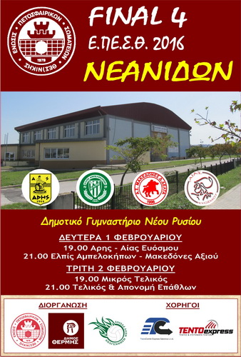 Η Ελπίδα συμμετέχει για τέταρτη συνεχόμενη χρονιά στο Final Four των Νεανίδων και έχει κατακτήσει τον τίτλο το 2014 και 2015. Στο Ρύσιο μάλιστα κατέκτησε το πρώτο της πρωτάθλημα. Την Τρίτη θα διεξαχθούν οι τελικοί (19.00 και 21.00) και ο νικητής θα εκπροσωπήσει την ΕΠΕΣΘ στο Πανελλήνιο Πρωτάθλημα. Το Final Four είναι το πρώτο από τα τρία στα οποία θα συμμετάσχει η Ελπίδα και θα ακολουθήσουν οι διοργανώσεις των παίδων και των κορασίδων.
