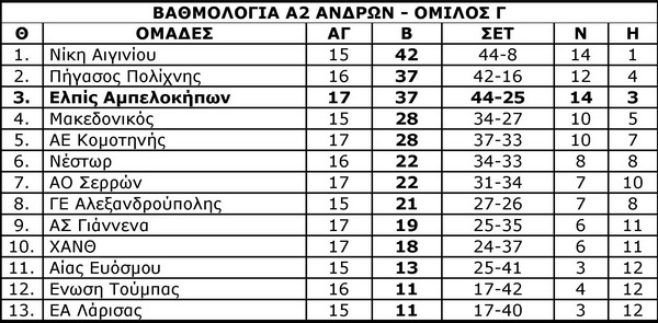 Μια «ατσάλινη» Ελπίδα κατάφερε να περάσει νικηφόρα από τα Ιωάννινα με 3-1 και να παραμείνει γερά στη διεκδίκηση μιας θέσης στα μπαράζ των δευτεραθλητών της Α2 Ανδρών. Εχοντας αντίπαλο μια ομάδα που παλεύει για τη σωτηρία της και ψάχνει βαθμούς, η ομάδα του Γιώργου Καραβιδόπουλου έδειξε χαρακτήρα τόσο στα δύο πρώτα σετ, που κέρδισε «στον πόντο», όσο και στο τέταρτο, μετά την μείωση του σκορ από τους γηπεδούχους. Το ερχόμενο Σάββατο 20/2 η Ελπίδα φιλοξενεί την ουραγό Λάρισα, με στόχο τη ρεβάνς για την ήττα του πρώτου γύρου.