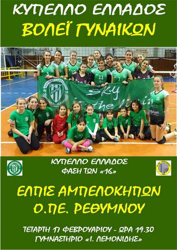 Μεγάλη μέρα η Τετάρτη 17 Φεβρουαρίου για το γυναικείο βόλεϊ της Ελπίδας. Η ομάδα του Γιώργου Χρυσομαλλίδη, που παραμένει αήττητη στο πρωτάθλημα της Α2, υποδέχεται τον ΟΠΕ Ρεθύμνου για την φάση των «16» του Κυπέλλου Ελλάδος Γυναικών. Θα είναι μια ευκαιρία για τις αθλήτριές μας να αντιμετωπίσουν μια ομάδα της Α1 και να πάρουν μία γεύση από την κατηγορία στην οποία ελπίζουμε να αγωνίζονται του χρόνου, αλλά και μια ευκαιρία για τον κόσμο να δει βόλεϊ υψηλού επιπέδου από τις δύο ομάδες.