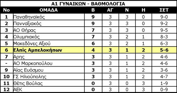 Πρωταγωνίστρια στην έκπληξη της χρονιάς παραλίγο να γίνει η Ελπίδα, αφού έκανε εντυπωσιακή εμφάνιση στη Σαντορίνη και ηττήθηκε με 3-2 από τον δευτεραθλητή ΑΟ Θήρας. Ο βαθμός που πήρε η ομάδα ήταν ασφαλώς πολύτιμος, αλλά στο τέλος υπήρχε η πίκρα για την ήττα. Όμως, χρόνος για δεύτερες σκέψεις δεν υπάρχει αφού ακολουθoύν η αναμέτρηση με τον πρωταθλητή Ολυμπιακό, την Τετάρτη στους Αμπελόκηπους (ώρα 18.00) και η δοκιμασία στο Μαρκόπουλο το Σάββατο.