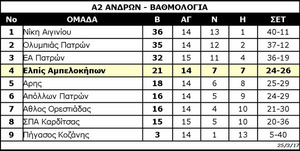 * Τα άλλα αποτελέσματα: Αρης – ΣΠΑ Καρδίτσας 2-3, ΕΑ Πατρών – Αθλος 3-2, Απόλλων – Πήγασος 3-0.