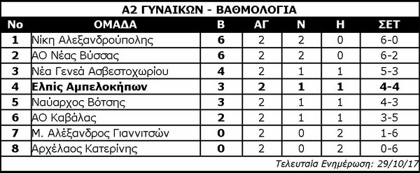 Από ήττα συνοδεύτηκε η πρώτη φετινή έξοδος της γυναικείας ομάδας, που έχασε με 3-1 στη Νέα Βύσσα. Η Ελπίδα μπήκε στο γήπεδο χωρίς συγκέντρωση και έχασε το πρώτο σετ, στο οποίο έμεινε πίσω από την αρχή (2-9, 12-18). Στο δεύτερο οι «πράσινες» έχασαν το αρχικό τους προβάδισμα (8-1), αλλά παρά τη μείωση του σκορ (18-17) συνήλθαν και έφτασαν στην ισοφάριση.