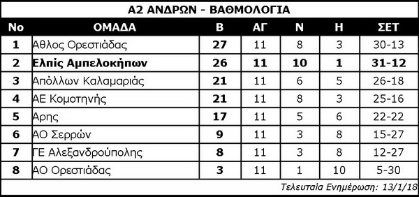 Νικηφόρο ήταν το ξεκίνημα του 2018 για την ανδρική ομάδα βόλεϊ, η οποία νίκησε τον ΑΟ Σερρών με 3-1 και παρέμεινε στην δεύτερη θέση της Α2. Για τους «πράσινους» ακολουθεί το ντέρμπι με τον Αθλο στην Ορεστιάδα, που προηγείται με διαφορά ενός βαθμού, ενώ η είσοδος στην πρώτη τετράδα έχει εξασφαλιστεί. Ωστόσο αυξάνονται και οι τραυματισμοί, καθώς στους Καραβιδόπουλο και Νικολαΐδη προστέθηκε χτες και ο λίμπερο Θάνος Κουκούλης.