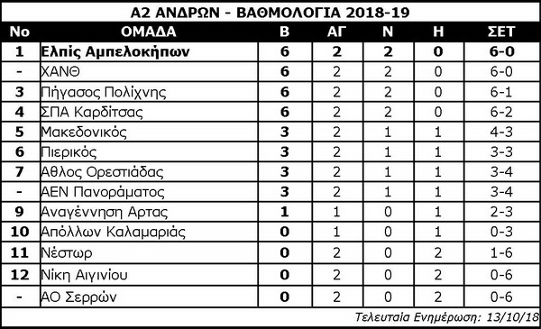* Η επόμενη αγωνιστική: Αθλος Ορεστιάδας – Ελπίς (20/10), Μακεδονικός – Πήγασος, ΧΑΝΘ – ΣΠΑ Καρδίτσας, ΑΟ Σερρών – ΑΕΝ Πανοράματος, Νέστως – Πιερικός, Αναγ. Αρτας – Απόλλων Καλ.