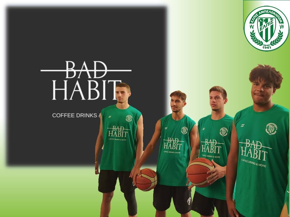 Την στήριξη και την πολύτιμη χορηγία του “Bad Habit” Coffee Drinks & More, του καφέ-μπαρ που αποτελεί σημείο αναφοράς στη Δυτική Θεσσαλονίκη, θα έχει για δεύτερη συνεχόμενη χρονιά η Ελπίδα Αμπελοκήπων και μάλιστα σε ακόμα μεγαλύτερο βαθμό από πέρσι.