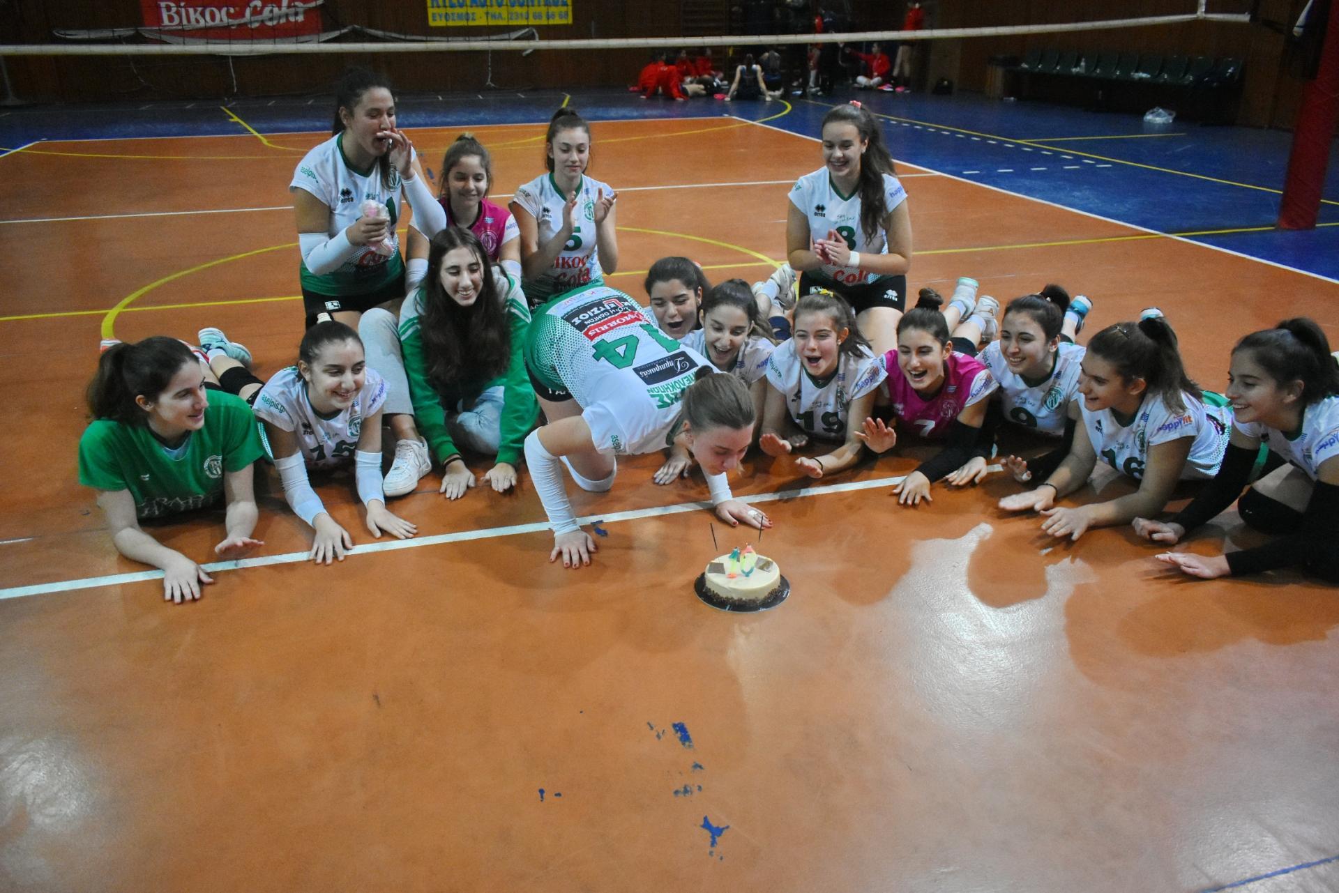Μετά τη λήξη της αναμέτρησης, οι συμπαίκτριες της Φιλιώς Σιχλετίδη-Κλείτσα της ευχήθηκαν για τα γενέθλιά της και φυσικά δεν έλειψε η απαραίτητη τούρτα!