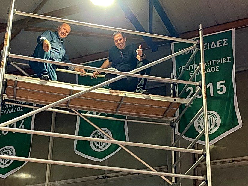 Νέα όψη απέκτησε το γυμναστήριο «Ι. Λεμονίδης» καθώς τοποθετήθηκαν στην οροφή τα νέα ειδικά λάβαρα με τις επιτυχίες των ομάδων βόλεϊ, με επιμέλεια των υπευθύνων του τμήματος.