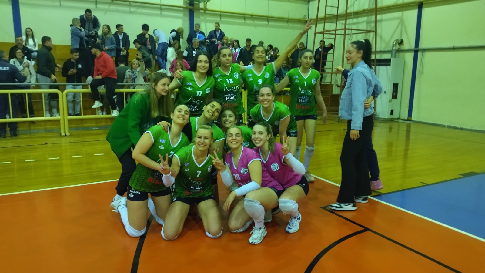 Υπό την καθοδήγηση του Στέλιου Κουτουνίδη και του Ζήση Παραφέστα, οι «πράσινες» έφτασαν στην επικράτηση με ανατροπή, αφού βρέθηκαν να χάνουν με 1-0, αλλά καθοριστική αποδείχθηκε η κατάκτηση του 2ου σετ (25-27), που επέτρεψε στην ομάδα μας να βρει ρυθμό και να επιβληθεί στα επόμενα σετ.