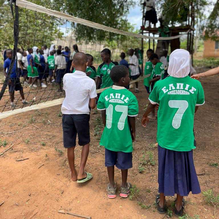Τα παιδιά στο χωριό Γκόνγκο της Τανζανίας θα μπορούν πλέον να παίζουν βόλεϊ και να αθλούνται φορώντας τις πράσινες φανέλες της Ελπίδας Αμπελοκήπων, προβάλλοντας το όνομα αλλά και τις αξίες του συλλόγου μας στη μακρινή χώρα της Αφρικής.