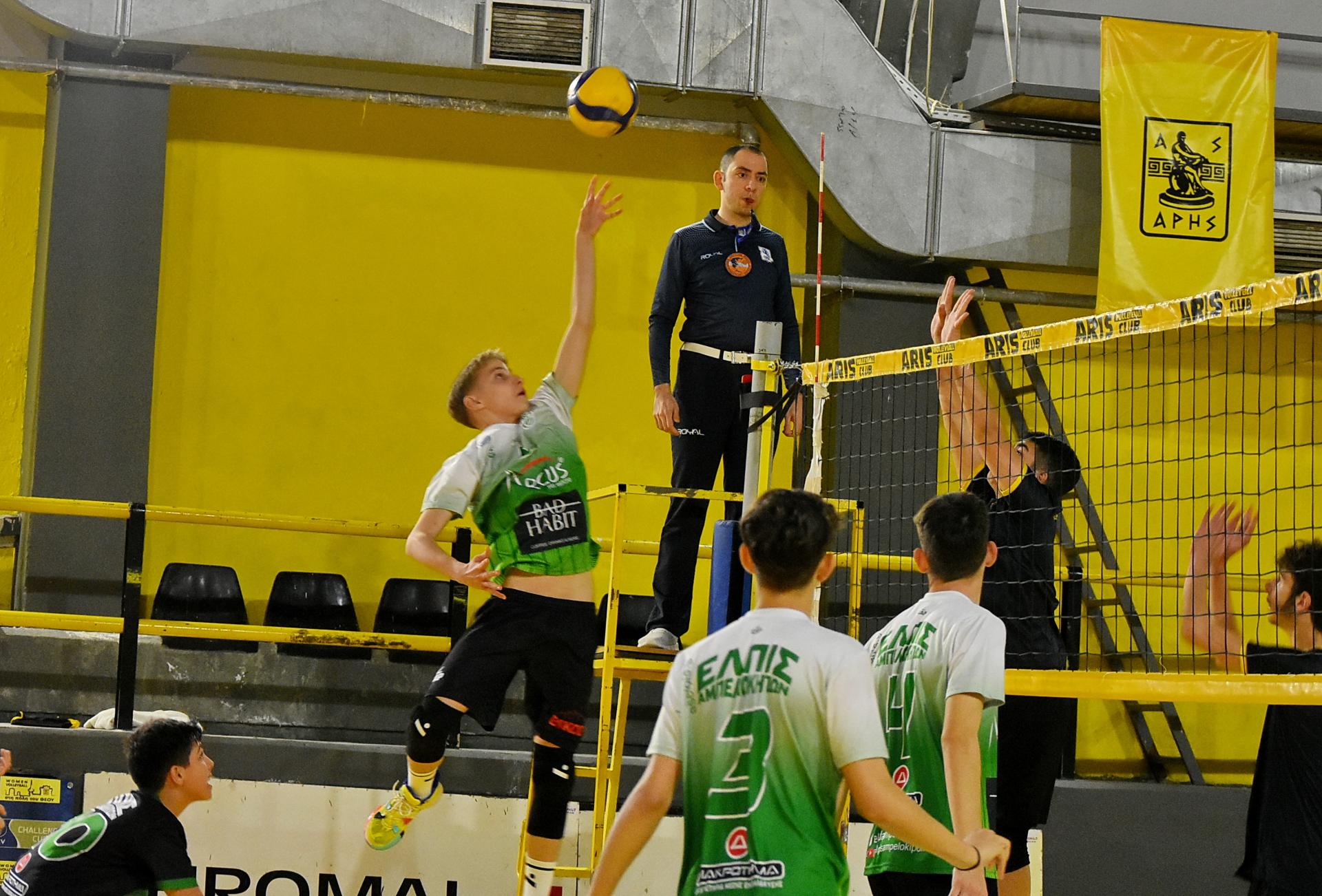 Άλλη μία νίκη για τους Παμπαίδες, που επιβεβαίωσαν ξανά τις δυνατότητές τους επικρατώντας επί του γηπεδούχου Άρη στο κλειστό του “Κλ. Βικελίδης” με 3-0 σετ.