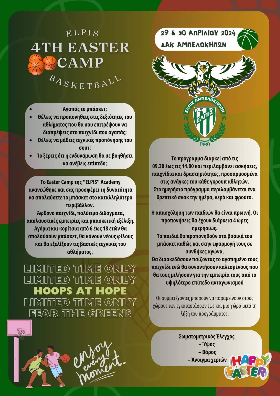 ΑΣ Ελπίς Αμπελοκήπων > 🏀 Ακαδημίες > Ξεκίνησε το 4o Easter Basketball Camp
